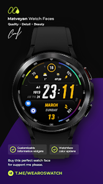 O Sport Watchface for watch4 é um aplicativo de personalização projetado para smartwatches que operam com Wear OS. Com um design minimalista e moderno, essa face de relógio digital oferece uma variedade de opções de cores, incluindo verde, azul, laranja, amarelo, vermelho e ouro rosa. O aplicativo é gratuito e serve como um facilitador para a instalação e localização da face do relógio no dispositivo. Além disso, ele apresenta informações essenciais como hora, dia do mês, dia da semana, mês, contagem de passos e porcentagem da bateria.